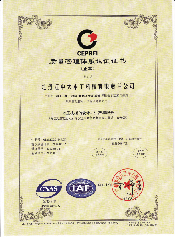 质量管理体系认证证书
